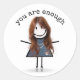 Stick Girl In Sneakers with Quote Classic Round Sticker