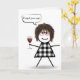Stick girl wearing buffalo plaid dress with hair, glasses, and holding a glass of red wine for belated birthday.