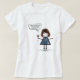 Cute stick figure girl wearing sneakers and blue denim dress holding a glass of red wine with hair, pearl necklace, and fun quote.
