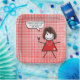 Stick Girl With Wine Glass On Gingham Paper Plate