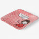 Cute stick figure girl with red wine in glass, hair, pearl necklace, and quote on red and white gingham background.