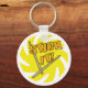 Fun innuendo percussion keychain reads, "Stick It!" with a pair of drumsticks in front of a bright yellow swirl. Made just for drummers, whether they're in marching band, drum corps, or rocking it out in a rock band.