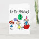 Three stick figure girls in party hats with balloons, one with a number 3 on it, and kid style text that reads "It's My Birthday!" is featured on this 3rd birthday design.