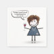 Stick girl in sneakers and blue denim jean dress with a pearl necklace, hair, and holding a glass of red wine.