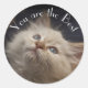 A blue eyed, fluffy, adorable white kitten is looking upward at the affirmation "You are the Best". Add a positive thought to someone's day with the cutest sticker around.