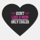"Celebrate the special bond with this 'Aunt Like A Mum Only Cooler' sticker! Perfect for the aunt who is more than just family—she’s a mentor, a friend, and the life of the party. Featuring a stylish circular badge design with vibrant pink and white typography, this sticker is perfect for laptops, water bottles, planners, or phone cases. It makes a thoughtful and funny gift for birthdays, Mother’s Day, or just to show her she’s the coolest aunt ever!"