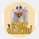 A Spooky Halloween theme in which a ghost is holding candies in their hands.