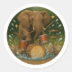 Sticker: Elephant Playing Drums in a Water Tub Classic Round Sticker