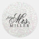 Fun stickers with Iridescent glitter-look printed background. Great to celebrate engagement. Using the customise it button, choose any sticker type you like. Last name as shown is double-spaced, use single-space or decrease text size to fit longer names into sticker. Please make sure not to extend text past the text safe region.