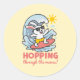 Make your notebooks, bottles or gifts shine with summertime joy! This sticker shows a nice little bunny with sunglasses, yellow bathing suit and red surfboard riding a big wave, accompanied by the message "Hopping through the waves!". Perfect for decorating agendas, laptops, envelopes or for children's parties. Its kawaii style makes it irresistible for children and lovers of sweet and fun designs.