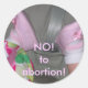 stickers (available in two sizes and prices), round, with photo of baby feet in pink baby shoes, and the words : "NO! to abortion!"