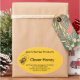 Graphic image of single bee on cells of honeycomb. Use label for honey products. Personalise with business name, contact information, net weight, and package contents.