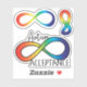 Autism acceptance/autism awareness sticker pack with three separate stickers, two stickers are a hand drawn rainbow infinity symbols and the third sticker is a hand-drawn rainbow infinity symbol with the words "Autism Acceptance"