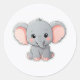Sticker, Smiling Baby Elephant with Blush Cheeks, Classic Round Sticker