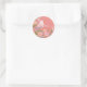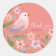Sticker with illustrations of watercolor birds and flowers in pastel shades of pink and purple. On pink background sticker with the word "thank you" and brand name for customers Generation ai illustration
