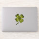 Vintage sticker with clover for Patrick's day. Vintage green lucky clover in engraving style.