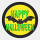 This marvellous design is classically "Halloween". It begins with the computer-generated bat, dimensionalized and given eerie, red eyes. The bat is on a backdrop of a bright, full, yellow "moon" and framed by the drippy, green slime, dimensionalized text, "HAPPY HALLOWEEN". Then, the entirety is encircled by the black back-drop. This final frame of black can be changed to any other colour to better suit your purposes. These delightful stickers COULD be a sugar-free alternative to handing out candies (though I doubt the kiddies would appreciate the gesture), but they also make fabulous seals for favour bags or party invitations and are also an excellent addition to Halloween scrapbook pages.