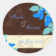 Brown and blue wedding stickers (labels).