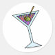 A brightly coloured martini glass filled with a wavy rainbow of cocktail fun and garnished with the classic cocktail olive on a martini pick. Perfect for any party or happy hour celebration.