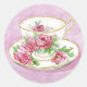 My original watercolor of cup & saucer with beautiful floral design of pink roses, as stickers.