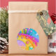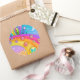 A bright and colourful sixties style retro pop art of a sky from morning until night with stars, moon, sun and a rainbow.