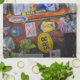The abstract design on this Kitchen Towel is actually an original photograph of an old pickup truck which found a resting place among the trees on a quiet street in Key West, Florida. There it was turned into a work of art, covered all over in colourful stickers of all kinds, bright blues, reds and yellows with lots of text. There's a pirate skull, sailing boats and the number 13. There's even a CONCHTASTIC sticker of the bouy at the southernmost point in the continental U.S..
