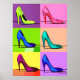 Poster in Mid-Century style poster art of stiletto pumps / high heels in multiple, bright primary colours