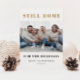 Modern and clean holiday card for 2021 featuring faux gold glitter block text that says "still home for the holidays" with your family photo.