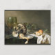 Still Life by Willem Claeszoon Heda, oil on canvas (undated, 17th century), is an antique vintage still life painting of a dinner arrangement on a wooden table. The picture depicts a large glass of wine, overturned silver goblet, peeled lemon, and plate of bread on a bright white tablecloth. In the lower corner is a realistic fly landing on the tablecloth, painted in stunning realism. Heda was one of the little Dutch Masters of the Dutch Golden Age of painting.