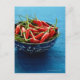 Still life of chilies in bowl on blue mat. Copyright: Asia Images Group