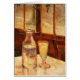 Still Life with Absinthe by Vincent van Gogh is a vintage fine art post impressionism still life painting featuring a carafe and a glass of absinthe sitting on a table near a window in a cafe or bar and restaurant. The bottle looks like it could have water or even wine.