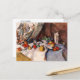 A fine art postcard with the painting by the French Post-Impressionist artist Paul Cézanne (1839-1906), Still Life with Apples (c. 1898). Throughout his career still life was a major theme. He would place objects carefully, spending hours positioning them. This still life showcases several fruits on a table with a draping curtain backdrop.