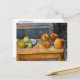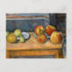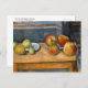 A fine art postcard with the painting by the French post-impressionist artist Paul Cézanne (1839-1906) titled, Still Life with Apples and Pears (1887). A grouping of green pears and fresh apples on a wooden table.