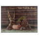 A rustic still life, of primarily brown tones, featuring a carved eagle purchased in the Soviet Union many years ago. It stands among pine cones, a section of a pine branch, a sprig of pine needles and a few lumps of pumice. Everything rests on a caribou (reindeer) fur; a weathered wall of wooden beams serves as the background. Customise by adding your own text.