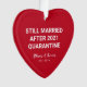 Show your humour with this Still Married 2021 Funny Quarantine Couples Names Ornament. This is a typography design with "still married after quarantine 2021" in white block lettering. The design was created to give some laughter for all the couples who did not divorce during the Covid-19 pandemic and being locked up with each other. Personalised with names in trendy hand lettering font followed by you established year.