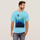 Featured is the old aphorism "Still Waters Run Deep" in light and slightly faint lettering superimposed over a soft, calming, even soothing, abstract image in shades of blue, aqua, white, and seafoam green that suggests dreaminess and emotional depth, This speaks to the psychological truth that it's often the quiet ones who have the most to say. Pictured here on a "blue horizon" t-shirt in Classic Printing. Other styles and colours available.