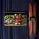 Make your luggage stand out on an airport carousel with unique tag designs. This yummy baggage tag features fine art photography of the ingredients for a delicious stir fry of vegetables and seafood. Green snow peas, brown Crimini mushrooms, sliced red peppers, chopped scallions, garlic cloves and raw shrimp are piled on a cutting board, ready for the wok! Customise the reverse side with your personal information.
