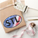 STL Lambert - St. Louis International Airport oval sticker with USA flag background.
