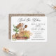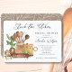 Stylish stock the kitchen bridal shower invitation featuring watercolor kitchen tools, a green plant, cutting board, orange flowers & personalised rolling pin.