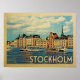 Stockholm vintage travel poster featuring a lovely coastal river setting. For Stockholm gifts, this art print makes the perfect souvenir or memento.