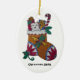 Cute little cat stuffed in a Christmas stocking hand painted classic with acrylics.