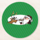 Stogie Santa and Reindeer on Green Stripes Round Paper Coaster