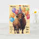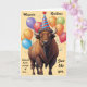 A birthday greeting featuring a majestic American bison in a party hat, offering dry humour about aging and resilience. Perfect for those who appreciate wit and wildlife. generativecontent.