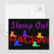 Rainbow assortment of feet stomp on word "racism" and smash it. Great way to get the message out that fighting bigotry requires everyone's help.