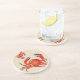 Sandstone coaster is shown with a art print of red crabs.