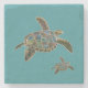 Turtles in two sizes swimming, one above the other. Shells are mottled blues and greens, with tan outlines. From original silk painting by Susan Lilly.