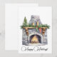 Stone Fireplace & Christmas Stockings Watercolor Holiday Card
