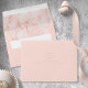 Not all wedding designs are created equal! The asymmetrical layouts for the pieces in this striking wedding set prove that. The interior of the matching wedding envelope shown here features a coordinating abstract background reminiscent of stone veined with glitter in shades of rose gold. Exterior soft blush pink is optional. Easily add your names and address on the back flap using the provided template. Search ID647 to see all the coordinating pieces in this set.