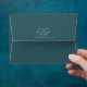 Not all wedding designs are created equal! The asymmetrical layouts for the pieces in this striking wedding set prove that. The interior of the matching wedding envelope shown here features a coordinating abstract background reminiscent of stone veined with glitter in shades of teal blue. Exterior deep sea green is optional. Easily add your names and address on the back flap using the provided template. Search ID647 to see all the coordinating pieces in this set.