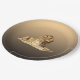 A tan and brown rendering of a carved stone lion on a background of the same colours.